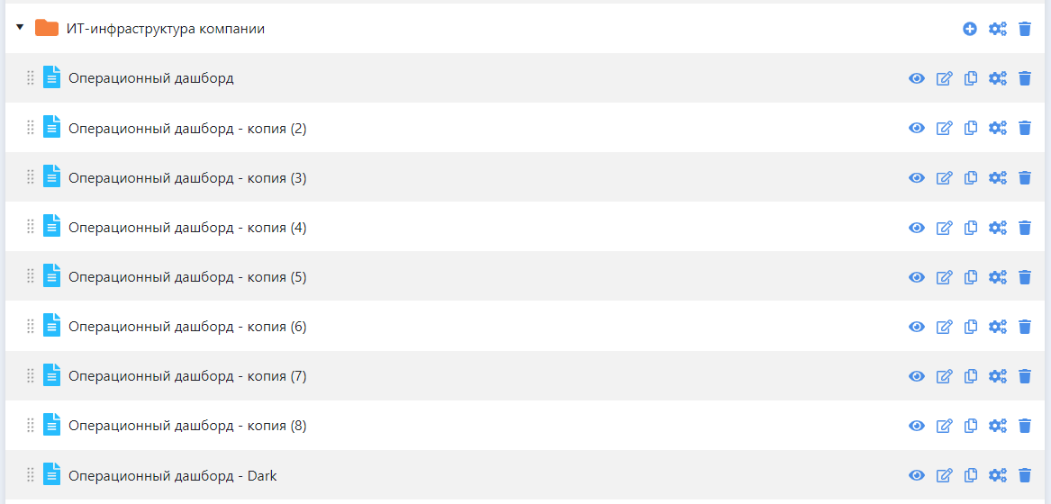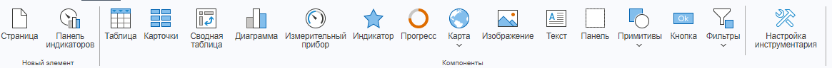 Панель индикаторов представляет собой безразмерную область, на которой размещаются элементы анализа данных. Все элементы размещенные на панели индикаторов могут быть взаимосвязаны между собой или разделены на группы взаимосвязанных элементов. Создается панель индикаторов в редакторе отчетов, а просмотр доступен во вкладке Просмотр