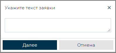 Во всплывающем окне при необходимости можно ввести текст заявки и нажать кнопку [Далее]. Появляется всплывающее окно, в котором обучающему необходимо подтвердить свои действия.