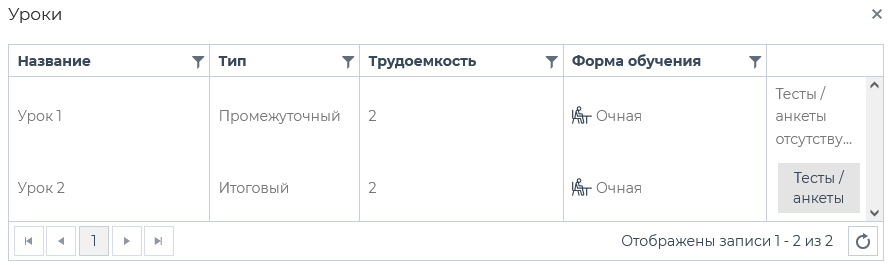 Для просмотра списка занятий необходимо нажать на кнопку [Уроки]