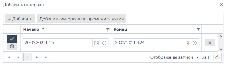Для удаления интервалов необходимо нажать кнопку