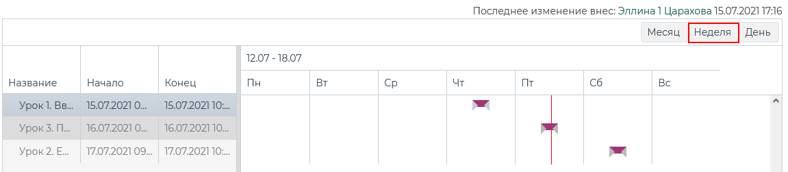 Для просмотра расписания на День/Неделю/Месяц необходимо выбрать временной интервал.