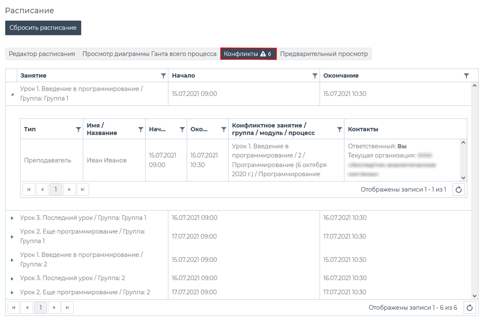 Конфликты в расписании
