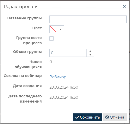 цвет (выбранным цветом будет обозначаться группа на диаграмме Ганта в расписании);