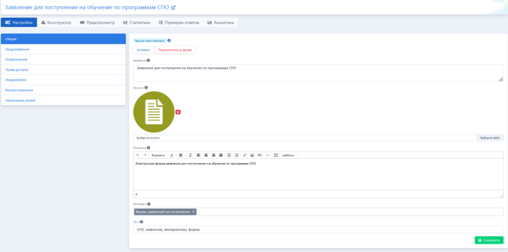 ![]() Опрос в статусе «Активен»