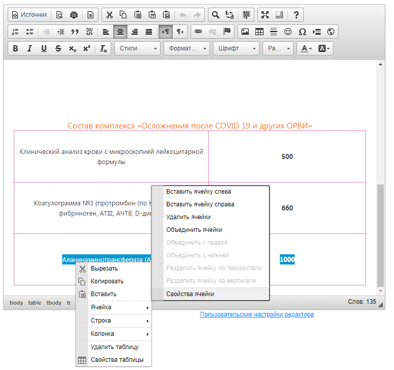 Если необходимо отредактировать текст в уже добавленном и сформированном фрагменте HTML-коде, то лучше всего не удалять информацию полностью, а перейти в Источник (HTML-редактор) и заменить необходимы текст.