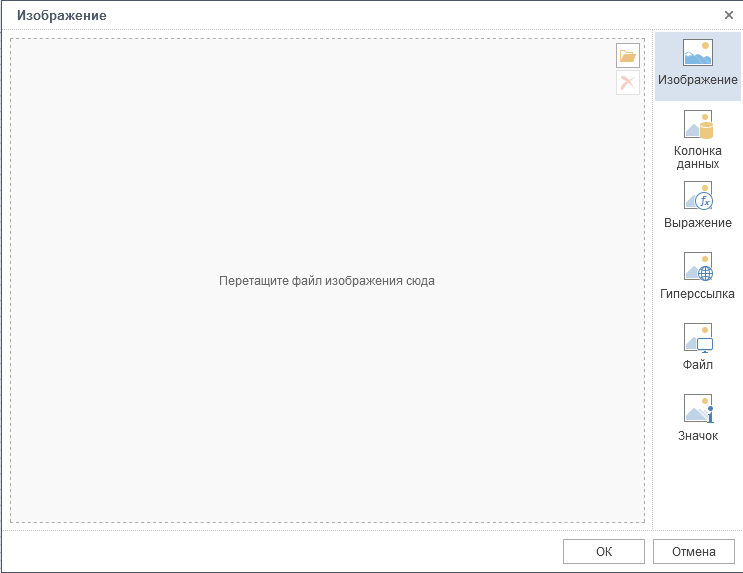 Кроме прямой загрузки картинки, оно может быть извлечено из файла, который будет загружен из локального источника. Например, следует указать путь к файлу d:\image.png. В этом случае, в момент построения отчета, из файла image.png будет извлечено изображение и вставлено в компонент Картинка.
