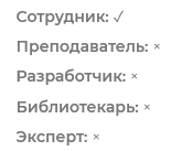 . Раскроется список ролей, которые уже имеются у пользователя в организации.