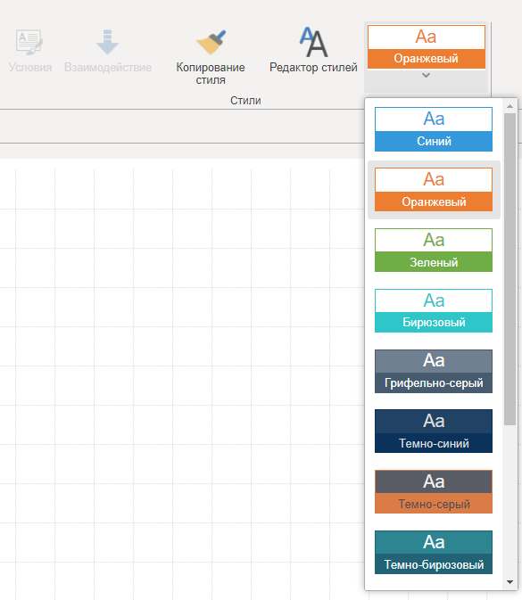 Для этого необходимо воспользоваться Редактором стилей. Назначить созданный стиль можно также с помощью меню стилей на вкладке Главная или при помощи свойства Стиль элемента.