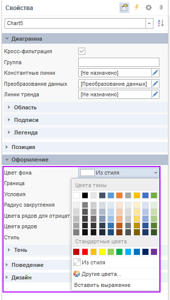 Одной из настроек оформления, является настройка цвета фона элемента. По умолчанию, цвет фона используется из назначенного стиля (Auto).