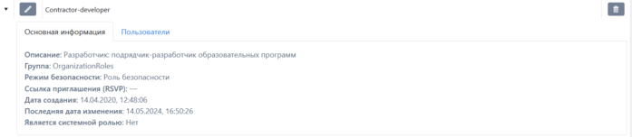Для удаления добавленного к роли пользователя или самой роли, необходимо нажать на кнопку
